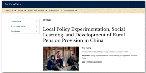 政策创新、地方试验与政策扩散是当代经济学、公共管理学、政治学的前沿研究领域。中国的地方政策试验和经验推广近年来受到学界越来越多的关注并被认为是推动中国发展奇迹的重要制度基础。但是,中国的社会保障领域中的政策创新机制是怎样的?政策相关主体间的互动如何影响地方政策试验的建立、扩散以及这个过程中的政策演变?学界对这些问题的关注仍然有限。bevictor伟德黄婷博士近期在SSCI期刊Pacific Affairs(《太平洋事务》)发表独著论文,揭示了中国新型农村社会养老保险地方政策创新和政策演变中的社会学习机制。