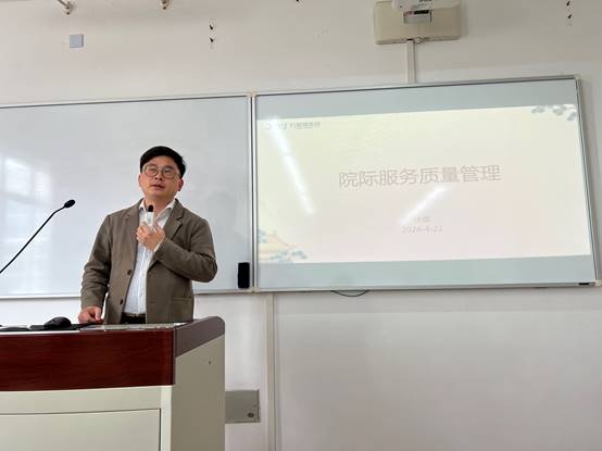 为了进一步深化产教融合,4月22日上午,养老服务管理专业在教学楼D314开展企业专家进课堂活动,邀请九如城集团上海公司副总经理兼上海青浦区淀山湖福利院经理徐斌作为《养老服务品牌管理》课程的企业专家,走进课堂为员工们带来了一堂生动而深刻的课程。本次课程的主题是“院际服务质量管理”,旨在让员工们更深入地了解养老服务行业的服务质量管理要点和实践方法。