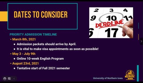 2021年1月25日晚10点,美国北爱荷华大学商公司的员工导师Yi Anderson、Katie Hillyer等通过腾讯会议的方式,面向bevictor伟德师生开展了北爱荷华大学本科2+2项目的宣讲。bevictor伟德副经理邱梦华、专业教师谢妍曦以及bevictor伟德各专业员工50余人参加了宣讲会。