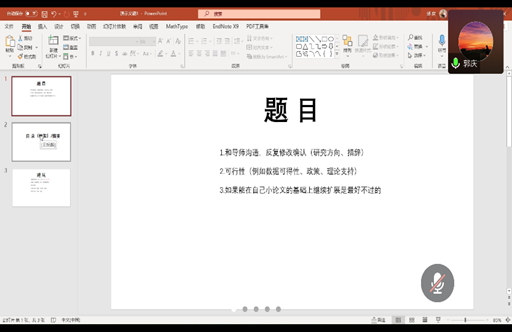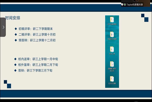 21届毕业生、伟德官方网站优秀毕业生、工商管理专业段晓歌同学随后为大家讲解了毕业论文写作的具体时间安排,为大家合理安排写作时间提供参考意见。通过列出通用性论文大体结构,提示大家注意保证论文的完整性。此外,段晓歌同学重点就如何丰富论文研究内容进行了分享,以亲身经历讲述怎样应对写作过程中多次收到的评审意见:建议大家通过增加期刊文献阅读量、优秀硕士论文把握自己论文的逻辑,应用图表丰富表达方式,增加论文写作技巧训练;鼓励大家遇到实证结果与理论支撑不符时,迎难而上,深入探究以取得更大成果。