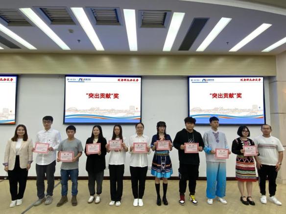 来自不同民族的四位同学带来配乐朗诵《民族接力诵读、礼赞伟大时代》,他们分别从新时代下入党动机、脱贫攻坚下家乡的变化、党光辉照耀下个人的成长和竞赛经历等方面讲述自己的故事,同学们表示国家对各民族人才的培育,不仅促成了少数民族同学的成长成才,也激励着他们用实际行动回馈着国家和社会。