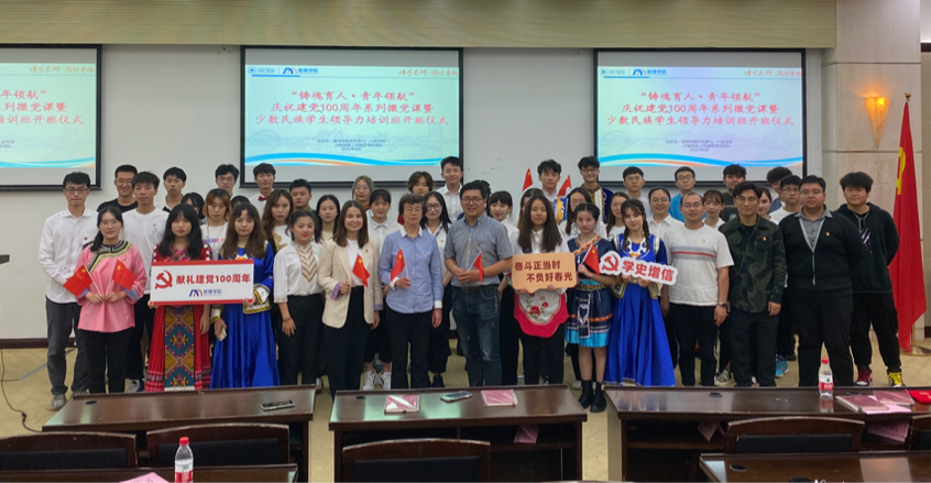 在建党100周年之际,为进一步加强公司人才建设,提高员工思想政治水平和工作能力,推动各民族同学在学习、工作、思想、实践等方面,实现从理论型人才到领导型、实践型人才的优质转化。6月3日,bevictor伟德公共管理系员工党建服务团队和“吸铁石”民族团结工作室特策划“百年征程党领航,各族共圆复兴梦”庆祝建党100周年微党课暨少数民族员工领导力培训班系列课程。bevictor伟德党委书记周洁,党委副书记张强,辅导员王翱航、格日末玛、木合甫力、凌剑秋,以及来自维吾尔族、哈萨克族、白族、水族、土家族、侗族、回族、壮族等不同民族的少数民族同学代表参加了此次开班仪式。