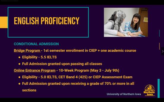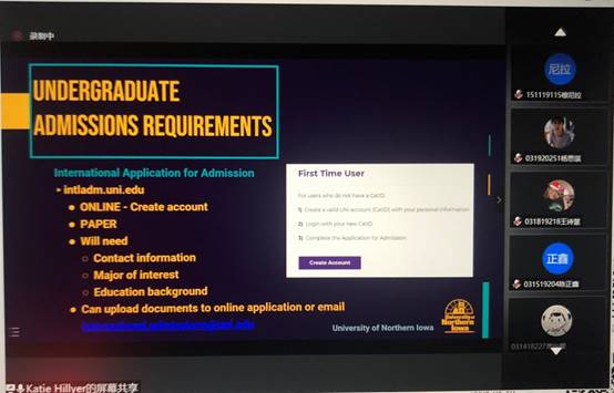 Yi Anderson and Katie Hillyer each introduced the location, scale, transportation, school-running characteristics, school rank and so on in detail through PPT, and mainly explained the majors and application conditions involved in the 2+2 double degree program, especially the application deadline. After the meeting, the students present at the meeting actively discussed the issues of studying majors and curriculum docking in the United States. This presentation has laid a good foundation for the progress of the 2+2 project between our school and the University of North Iowa.