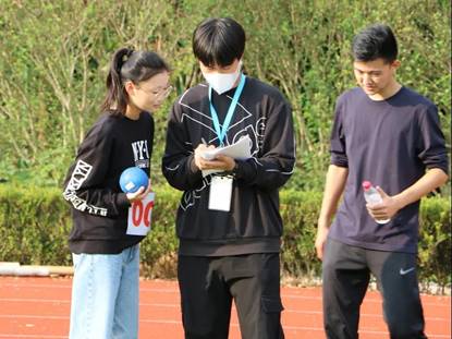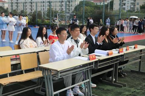 赛场上,运动健儿们激情飞扬、奋力拼搏、挥洒汗水、争夺冠军,裁判员、志愿者们全心投入,履行职责。赛场下,同学们热情助威,呐喊鼓掌。