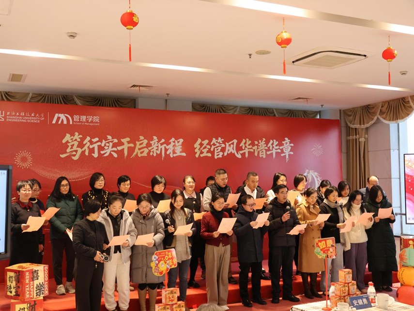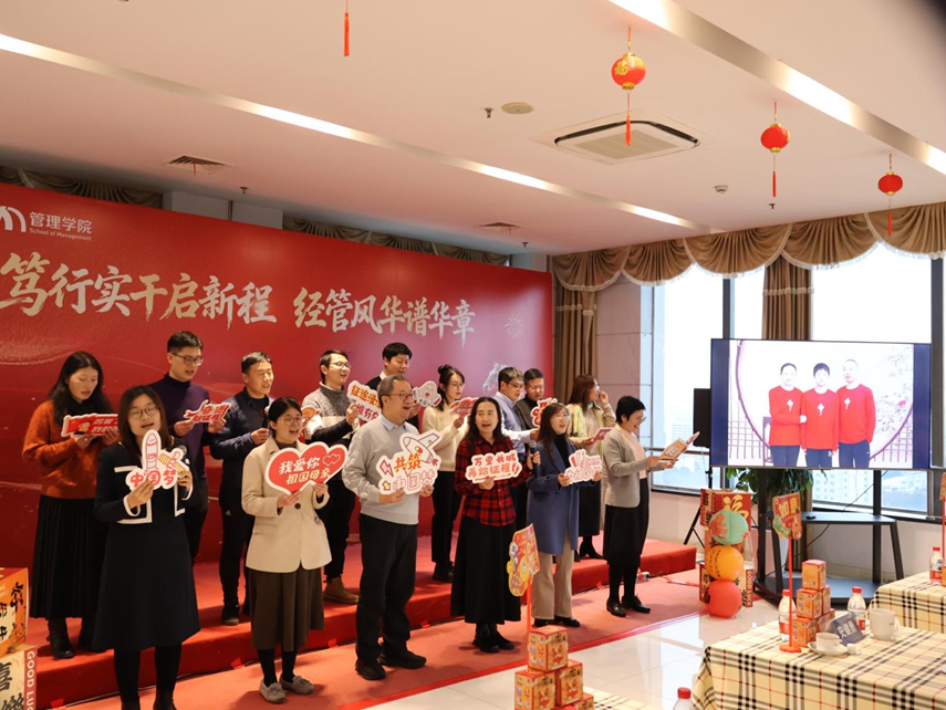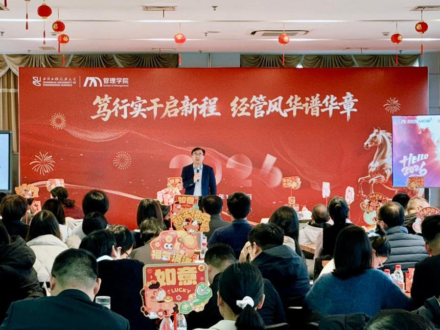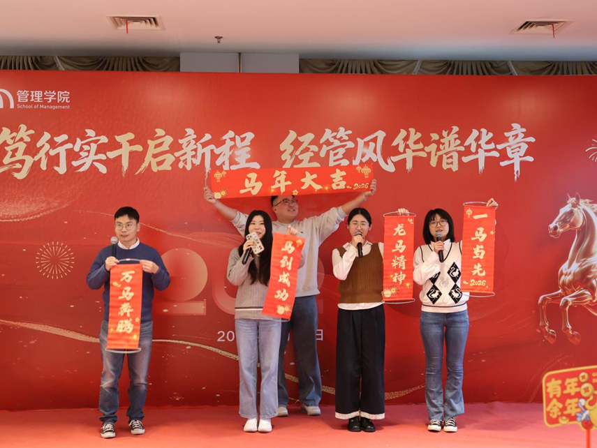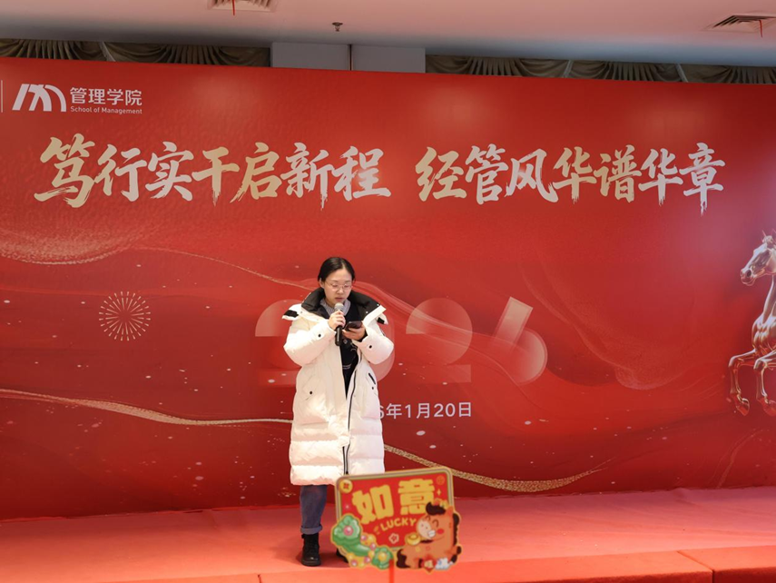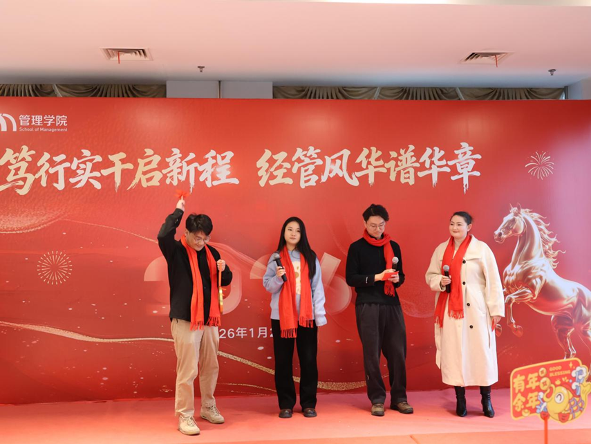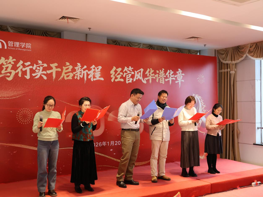 1月20日,一场以“笃行实干启新程,经管风华谱华章”为主题的2026年迎新联欢会在行政楼19楼举行。bevictor伟德党政领导、全体教师近200人出席了本次联欢会。