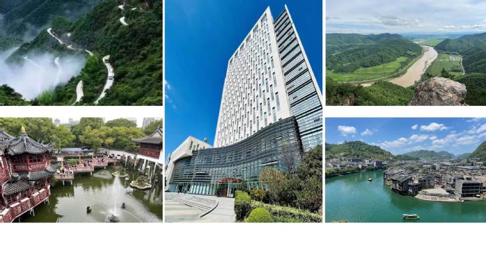 (自左向右:1、吉祥 致富坦途;2、刘理海 天蓝气清;3、杨坤 边境小城,一江两岸;4、周洁 豫园秋韵;5、李晗 镇远古城)