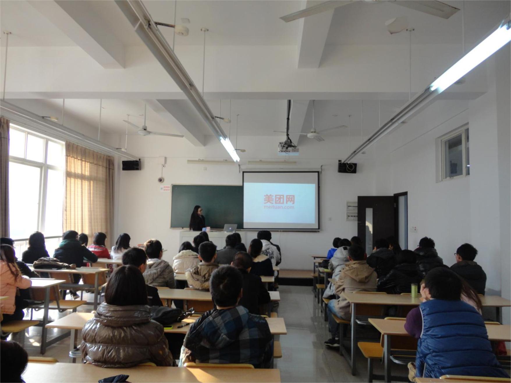 宣讲会伊始,陈经理利用视频暖场,逐步详细介绍了公司历史、背景以及发展现状,从中同学们了解了美团网的历史背景、发展历程、公司优势、系统及服务团队、核心业务、公司的主要客户。公司的远景、使命、价值观以及业务发展规划给同学们留下了深刻的印象。紧接着重点介绍了美团网的人才需求、招聘计划以及相关的员工福利政策,展示了美团网企业文化与员工生活。在之后的问答环节,同学们积极与陈经理进行交流沟通,提出自己所关心的问题。