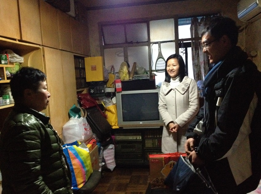 1月15日,公司党委副书记范君晖老师、员工事务办主任牛兵老师和辅导员白玉新老师又来到了闸北区2013级困难生胡文轩同学家里进行走访。胡文轩同学父母离异,与母亲一起生活,母亲退休了,患有脑萎缩疾病,家里还有一个80多岁的姥姥患病在床,家庭经济十分困难。公司领导和老师给胡文轩及其家人送去了公司的关怀和慰问,鼓励他认真学习,取得好成绩,用自己的知识和能力来改变家庭状况,实现人生目标。