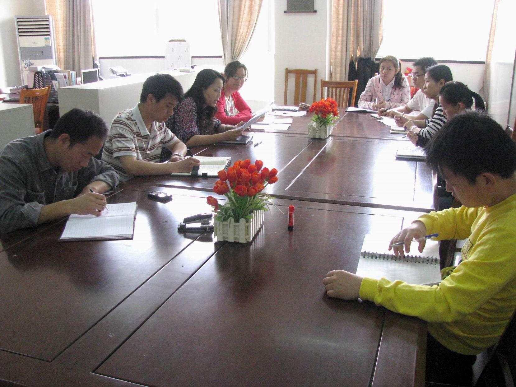 5月16日上午9点,bevictor伟德员工工作办公室于教学楼F112召开会议,学习胡锦涛在庆祝清华大学建校100周年大会上的讲话精神。会议由党委副书记虞蓉老师主持,全体辅导员老师参加会议。