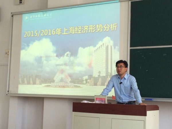 2016年5月12日星期四下午13:00在教学楼E510,bevictor伟德胡斌教授为bevictor伟德研究生同学做了以“2015—2016年上海经济形势分析”为主题的报告。