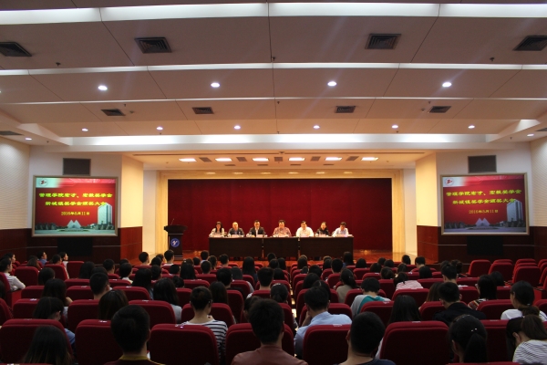 汪泓教授在会上发表了热情洋溢的讲话,既向同学们介绍了宝山的经济发展,又和同学们分享了个人经历中的精彩故事,并寄语同学们要增强学习能力、创新能力,博览群书,并学会从书本中吸取信息,在结合国家形势和社会需求的基础上努力在学业上有所提升,同时服务社会,感恩社会。汪泓教授表示,同学们处在祖国复兴的伟大时代,这个时代给我们提供了和平发展的环境,作为当代青年,更应该秉承五四精神,努力实现中国梦。