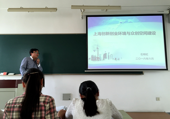 石教授从如下几个方面由浅入深进行讲解:一、传达上海科创中心建设对创新创业环境提出的要求,突出众创空间发展的重要性以及紧迫性;二、介绍全球和国内外众创空间的发展背景、现状及趋势和经验案例借鉴;三、讲述众创空间的理论分析、组织模式、治理机制和发展动力;四、介绍上海众创空间网络构建的总体情况;五、进行国内外众创空间建设的典型案例分析。石教授引用成功人士的案例,鼓励青年员工以饱满的热情和昂扬的斗志投入到创新创业项目的探索性实践中去。讲座期间,同学们还就上海创新创业环境与众创空间的。最终,讲座在大家热烈的掌声中落下帷幕。
