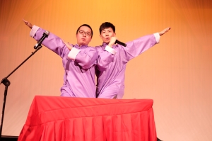 晚会中大四的毕业生辅导员老师们上台对同学们做了深情的寄语,老师们的讲话充满对大四员工即将毕业的不舍以及对他们未来的美好希冀。中场游戏环节,辅导员老师和同学们还共同参与到了游戏中,配合天衣无缝,幽默滑稽,让人捧腹大笑。