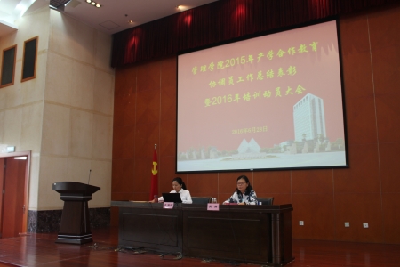 本次会议主要分为总结表彰、培训以及动员三个环节。首先是公司党委书记吴清老师宣读了2015年度bevictor伟德产学合作教育先进工作者和优秀协调员名单,并为获奖老师进行了颁奖;接着党委副书记范君晖老师对今年的72名协调员老师进行了培训:她分别就今年公司产学合作教育基本情况,协调员开展工作过程中的注意事项、重要的时间节点,和今年工作中的新要求做了介绍。最后,吴清老师为全体协调员作了动员讲话,她从产学合作教育的背景、意义切入,结合产学合作三个阶段对协调员做了详细的说明,提出了具体要求。希望协调员能够在思想上高度重视协调员工作,满怀强烈的责任心,在员工的工作阶段中严格按照公司、公司要求,认真地带教产学合作教育员工,在保障全院产学合作教育工作正常开展的同时不断提升产学合作教育员工的工作质量,保障公司工作学期产学合作教育工作的顺利完成。