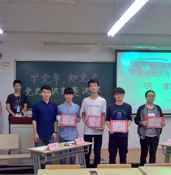 知识竞赛的内容主要包括党章、《廉洁自律准则》和《纪律处分条例》等党规和党史的部分基础知识,题目类型包括选择题和填空题,以必答和抢答形式进行。 为避免传统形式的单一乏味,增强竞赛活动的灵活性、实效性和趣味性,本次竞赛还借助手机互动平台和求助热线,入党积极分子积极参与其中,态度认真。此次党史知识竞赛系列活动不仅让同学们学习了中国共产党建党以来的光辉历程,进一步学习了党的基本理论、基本路线、基本纲领以及党章知识,也表达了入党积极分子坚决贯彻党的十八大精神,发扬“两学一做”精神的决心。