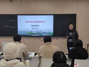 此次讲座是《信息安全》课程中的一次重要活动,也是“企业专家进课堂”项目的成果展示。企业专家授课内容生动新颖,案例紧跟行业发展,让大家充分了解了行业的发展现状和具体的岗位能力要求,找到了课堂学习和企业需求的结合点,同学们对专业有了新的认识,开阔了视野,更加明确了学习目标和方向。