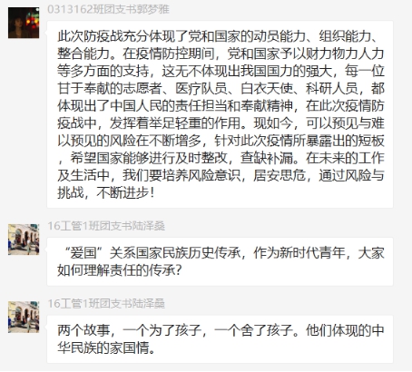 上课同时,各专业辅导员老师也引导员工进行在线讨论,通过提问、点评等方式启发员工思考,以下摘录部分员工的上课过程中的感受: