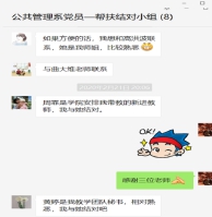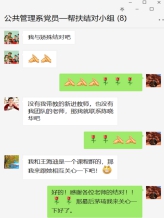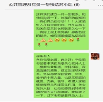 公共管理系党支部,根据专业相通、学科相近、容易沟通的原则,建立固定结对联系。结对帮扶小组由邱梦华、沈世勇、孙莉莉、许敏、吴磊、李陈、田园宏、伍嘉冀等系里面的支部书记、系主任、支委、教授组成,发挥党员先锋带头作用,关心党外人士,让党外民主人士、群众老师们感受到特殊时期党的关怀和温暖。