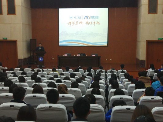 会上,史老师为同学们解析了bevictor伟德LOGO的含义,整体像艺术字体的M,代表Management(管理);造型也像两个人并排在一起,象征老师和员工;一个红色,一个蓝色,寓意红海战略、蓝海战略。史老师还以“博学思辨,践行卓越”的院训作为精神凝练,引经据典,为全体管院学子提出了希望与要求。他指出,《礼记•中庸》提出的五之学之道:“博学之,审问之,慎思之,明辨之,笃行之。”归纳起来就是三个层次:博学,思辨,践行。青年人是时代最灵敏的晴雨表,青年人的价值取向决定了未来整个社会的价值取向,青年怎样,未来便怎样。今天青年之精神,将是未来社会之面貌;今天青年之追求,将是未来国家之走向。年轻人肩负着时代的责任和光荣,青春更是一种坚忍不拔、积极进取、乐观有为的人生态度。